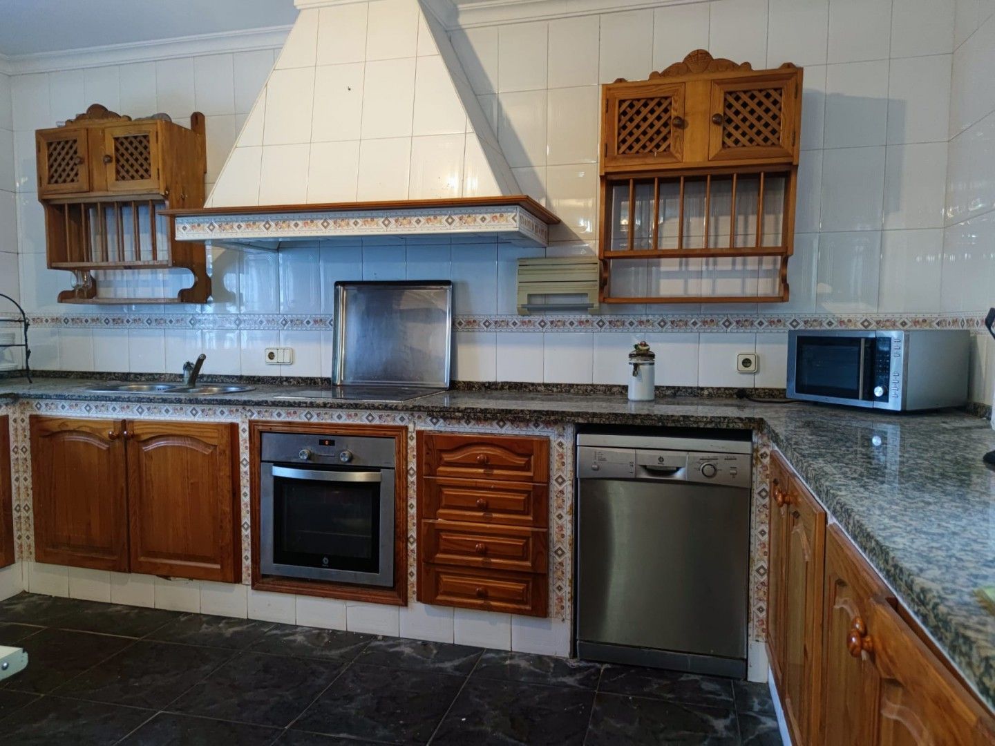 La casa se compone de 3 dormitorios, 2 baños, vestidor, porche cubierto, gran salón comedor con chimenea y cocina con barra americana, lacena y garaje. En la planta alta amplio cuarto lavadero con posibilidad de sacar 2 habitaciones más y azotea.