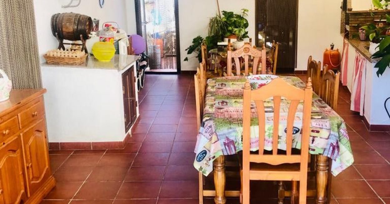 La finca cuenta con una vivienda principal de 188 m² compuesta por 3 dormitorios, baño, aseo, gran cocina, salón comedor con chimenea y patio cubierto con barbacoa para el disfrute en cualquier época del año. Además, cuenta con un porche cubierto al que se accede a través de un gran patio exterior de hormigón impreso con parking techado con capacidad para 3 vehículos.
